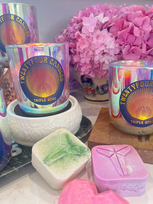 Hand-poured on the Central Coast, California, our eco-friendly candles use lead-free cotton wicks, all-natural mica powder for a glittery touch, and premium fragrance oils infused with essential oils. Enjoy a clean burn and elevate your space with this expertly crafted candle.